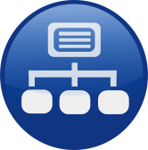 This features a blue circle with an icon inside of it. This icon is a representation of a computer screen, possibly showing a folder or a document. There are several other icons surrounding the main one, creating a visually appealing and organized display. These additional icons may represent various functions or tools related to the main subject matter, which could be a software application or a digital file management system.