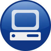 This features a blue circle with a computer monitor inside of it. The monitor is white and occupies most of the space within the circle, giving the impression that it's the main focus of the image. This could be an icon or logo representing technology or computing in general.