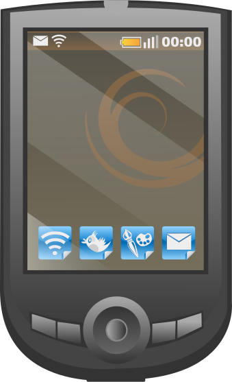 This features a cell phone with various apps displayed on the screen. There are four different icons visible, each representing a specific app or function of the device. These icons are arranged in a row across the bottom portion of the screen, making it easy for users to access and navigate through their options. The overall design of the cell phone is sleek and modern, with a focus on functionality and user-friendliness.