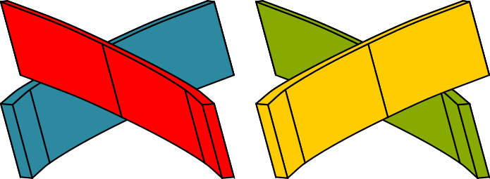 This features a pair of red and yellow triangles, each with a different color. The red triangle is on the left side of the image, while the yellow triangle is on the right side. These two triangles are placed next to each other, creating an interesting visual effect. The colors used in this design give it a vibrant and lively appearance.