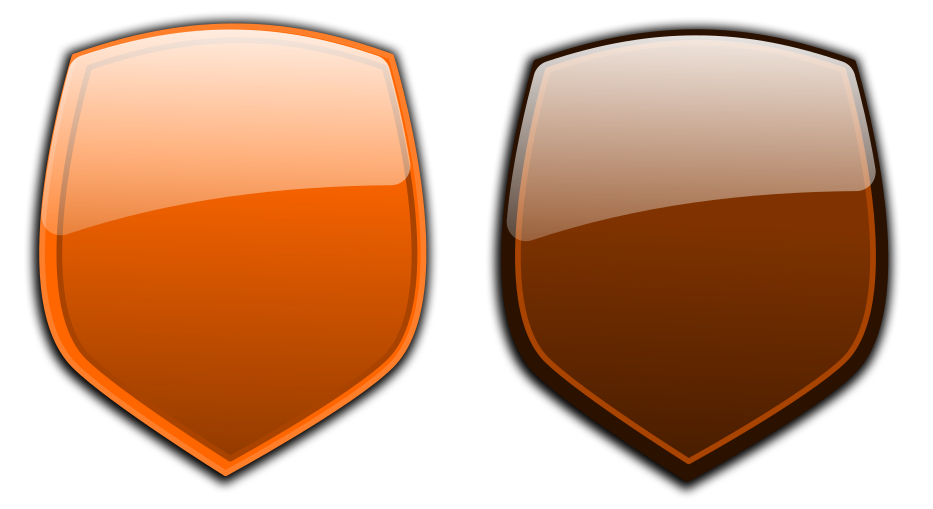 This features two shields, one orange and the other brown. They are placed side by side on a white background, creating an interesting contrast between the colors of the shields and the background. The orange shield is larger than the brown one, occupying most of the space in the image. The brown shield appears smaller, taking up only a portion of the image. These two shields may represent different symbols or be used as decorative elements in various contexts.