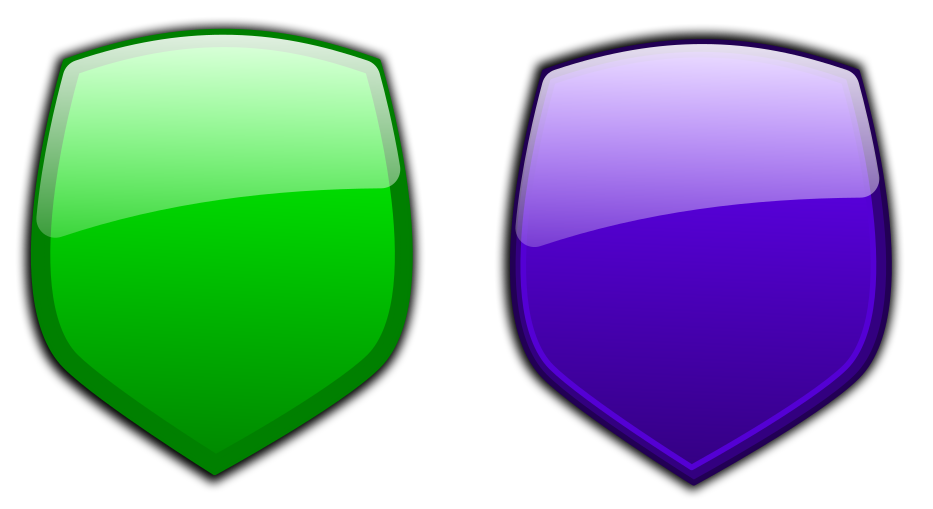 This features two shields, one green and the other purple. They are both placed side by side on a white background. These shields have a shiny appearance, giving them an elegant look. The contrasting colors of the green and purple shields make them stand out against the white background, creating a visually appealing composition.