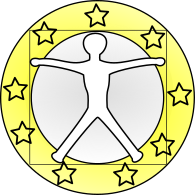 This features a round, yellow circle with a man's figure in the center. This figure is made up of various body parts such as legs, arms, and torso. There are numerous stars surrounding this central figure, creating an interesting visual effect. The combination of the man's figure and the stars gives the impression that it could be a symbol or logo for something related to health or well-being.