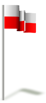 This features a flag of Poland, which is waving in the wind. There are three flags in total, with one being larger and more prominent than the other two. They all have red and white colors, representing the Polish flag. The scene appears to be set against a backdrop of a plain wall or background, emphasizing the flag's prominence.