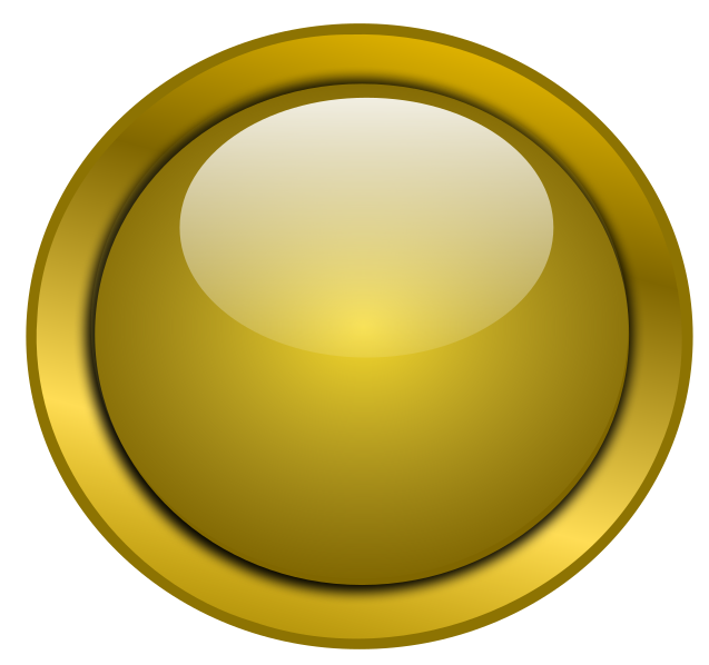 This features a large, round, golden button with a smooth surface. It appears to be a close-up of the button, showcasing its intricate details. The color of the button is predominantly yellow, giving it an appealing and warm appearance. This type of button could potentially be used for various purposes such as decoration or functional use in clothing or other items.
