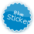 This features a blue sticker with white text that reads "Blue Sticker." The sticker is round and has a blue background, making it stand out. It appears to be a simple design, likely used for identification or decoration purposes.