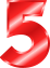 This features a red five on a white background. The number is prominently displayed, taking up most of the frame. The color of the five is vibrant and stands out against the white background, making it easy to read.