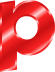 This features a red letter P, which is the first letter of the word "Pizza." The letter appears to be made out of a red ribbon or banner. The color of the letter is predominantly red with some shades of orange and yellow. The letter's design gives it an eye-catching appearance that stands out against its background.