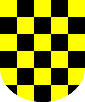 This features a yellow and black checkered pattern, which is reminiscent of a shield. The design consists of alternating squares of yellow and black, creating an eye-catching and bold appearance. This pattern can be found on various items such as clothing or accessories, adding a unique touch to the wearer's style.