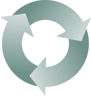This features a circular symbol with three arrows interlocking in the center. This design is commonly used to represent cyclical processes or continuous movement, such as the concept of recycling or the passage of time. The arrows are positioned at different angles and points within the circle, creating an intricate pattern that highlights the circular nature of the symbol. Overall, this image conveys a sense of unity and interconnectedness between various elements or processes.