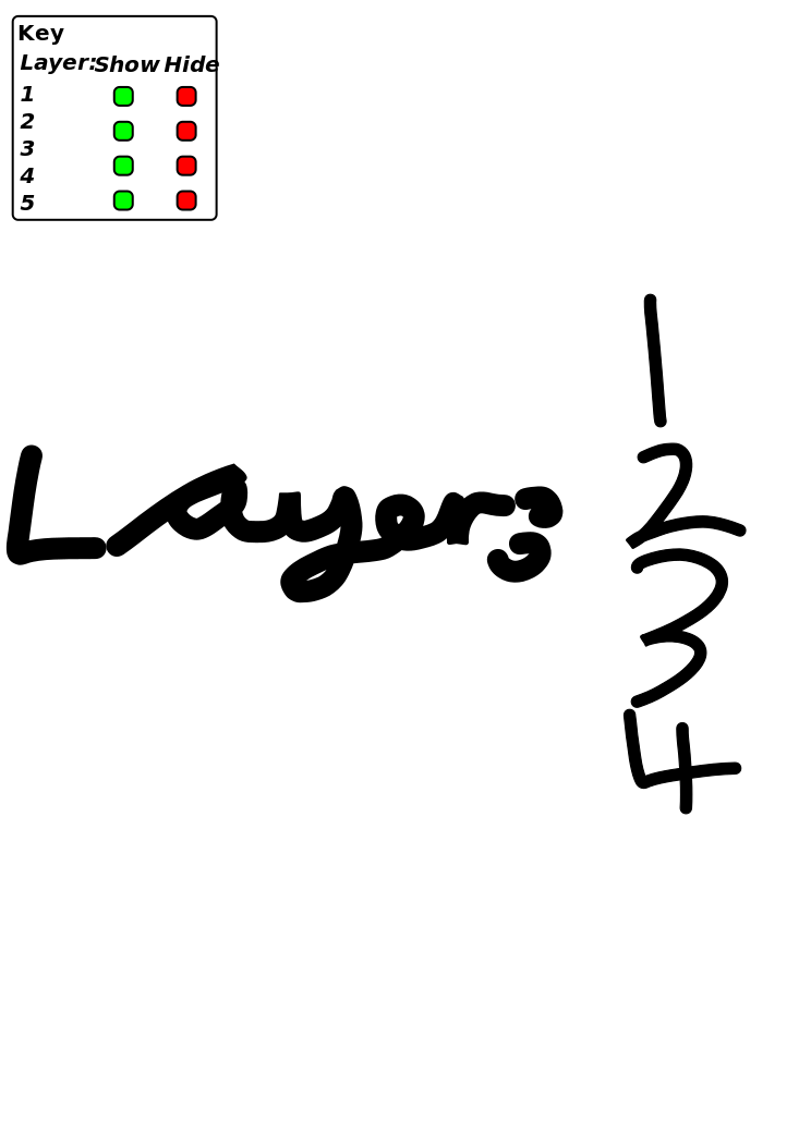 This is a white background with black writing on it. The writing says "layers" and the number 345 in black. There are also four red dots surrounding the word layers, which could be used as buttons to show or hide different layers.
