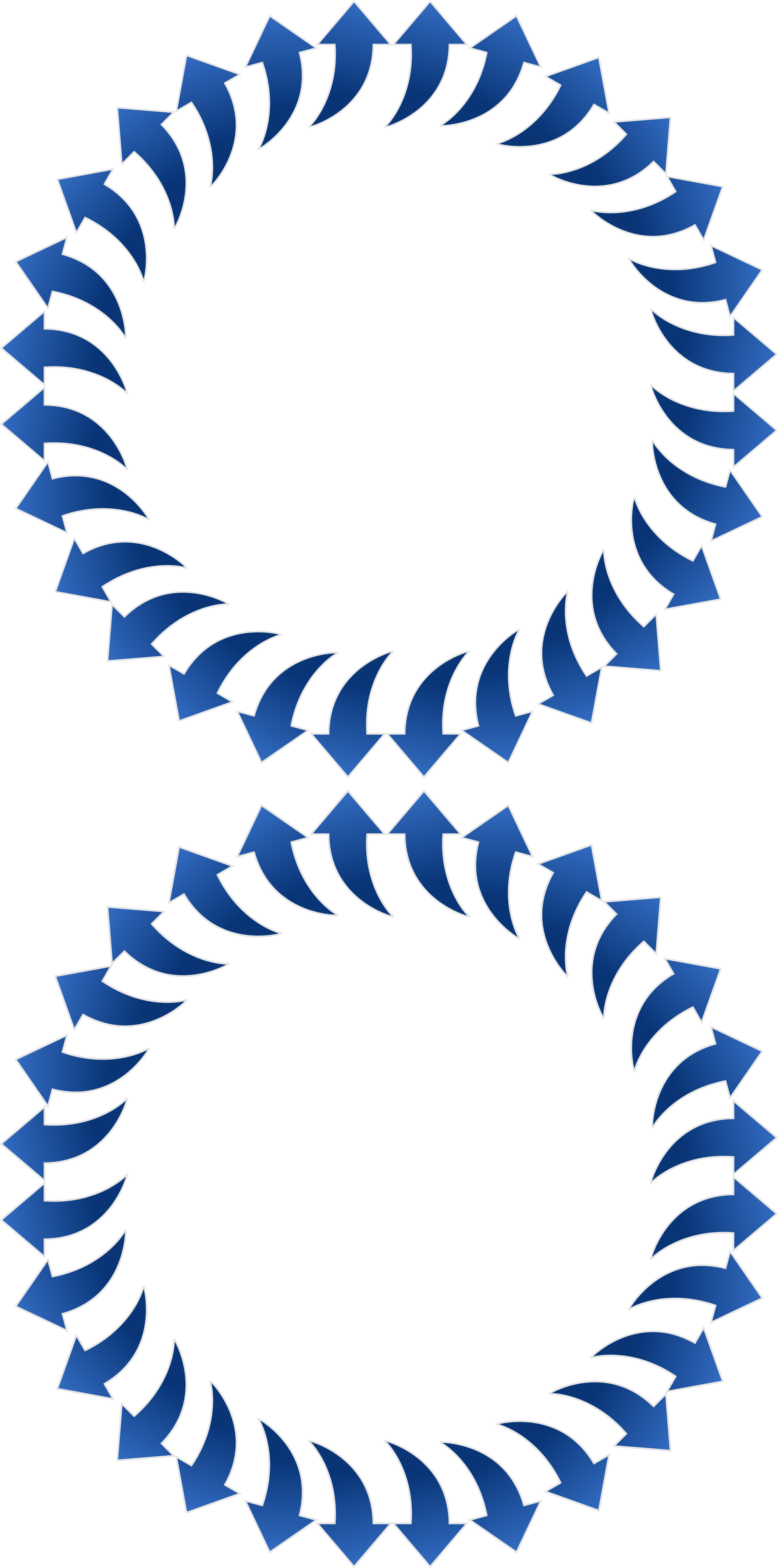 This features two blue circles with a pattern of curved arrows surrounding them. These circles are placed on top of each other, creating an interesting visual effect. The arrows are arranged in a circular fashion around the circles, giving the impression that they are part of a larger design or artwork. The overall composition of the image is simple yet intriguing, with the blue color and curved arrows adding depth and interest to the scene.