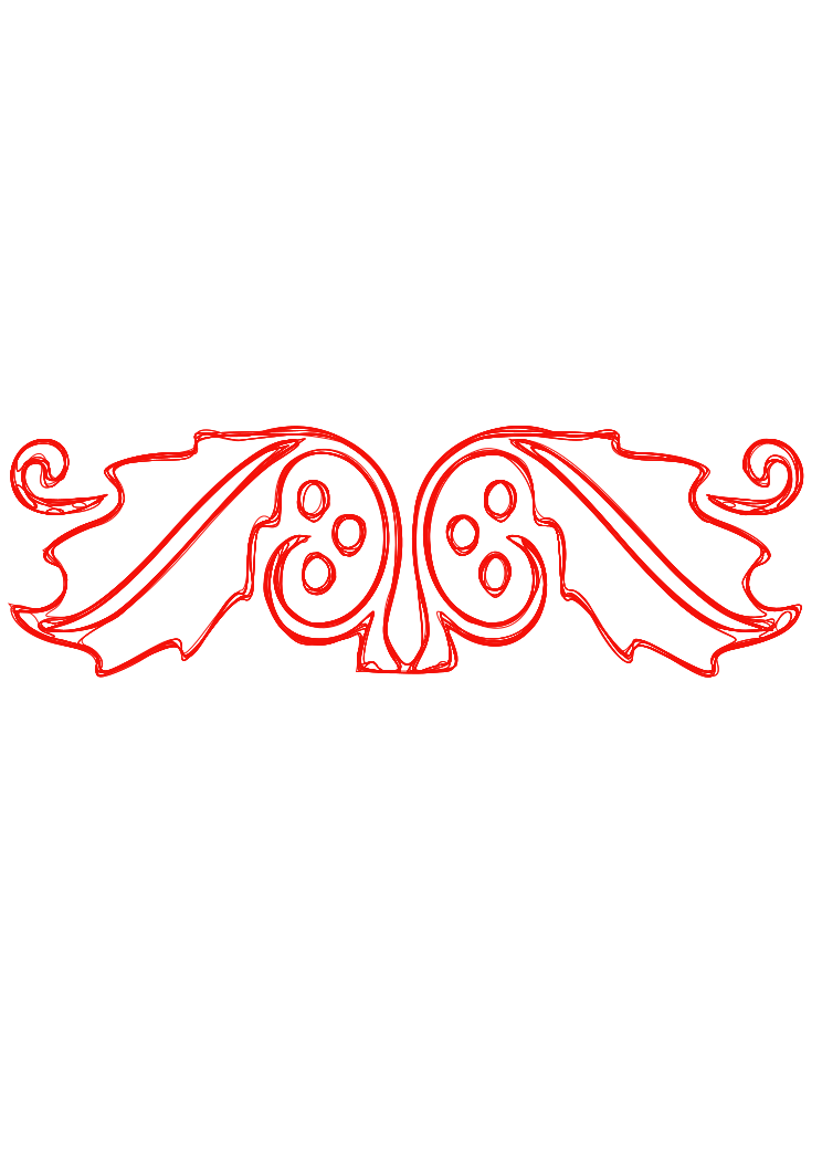 This features a red and white design with an ornate border. The main focus of the design is a large, intricate wing shape that spans across most of the image. This wing has a decorative pattern on it, adding to its visual appeal. In addition to the wing, there are several smaller wings or shapes scattered throughout the image, creating a sense of depth and complexity in the overall design. The combination of red and white colors gives the design a striking appearance that stands out against any background.