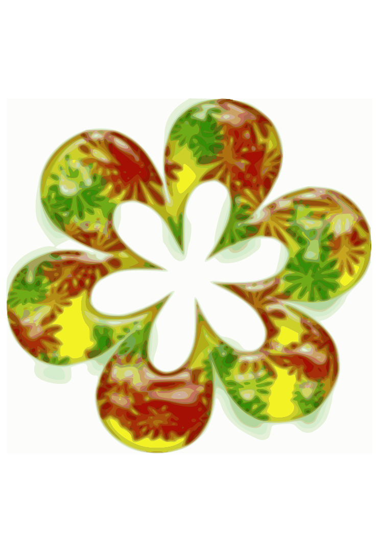 This features a white background with a large, colorful flower made up of four smaller flowers. Each of the smaller flowers is yellow and green in color, creating an eye-catching pattern. The flower design appears to be a stylized representation of a sunflower or daisy, adding a vibrant touch to the overall composition.