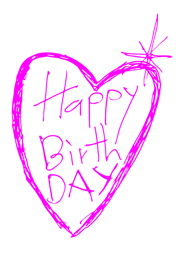 This features a pink heart with the words "Happy Birthday" written in it. The heart is filled with love and warmth, making it an ideal greeting for someone's special day. The writing appears to be done by hand, giving it a personal touch. This heartfelt message can be used as a card or displayed on various surfaces to spread joy and celebrate the occasion.