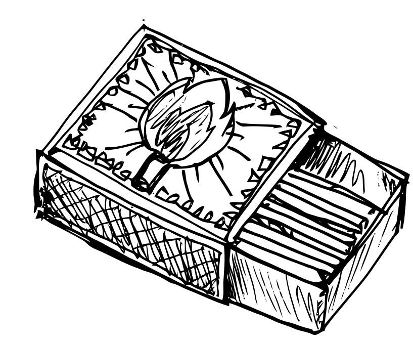 This features a hand-drawn matchbox with a sun design on the front. Inside the box, there are several matches arranged in rows. The drawing of the sun is placed above the matches and appears to be an artistic representation of the light source that ignites the matches. This unique design adds a creative touch to the otherwise ordinary object.