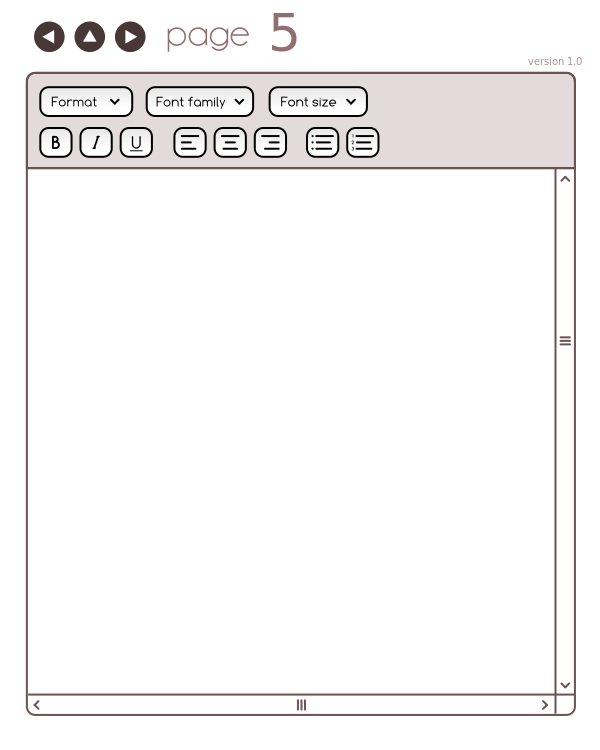 This displays a computer screen with a blank page open. There are several options available on the screen, including "Page 5" and "Font." Above the blank space, there is a row of buttons that can be used to change font sizes or styles. Additionally, there are two more rows of buttons located at the top right corner of the screen, which may provide additional functions or settings for the page. The overall appearance suggests that this could be a tool for creating presentations or slideshows.