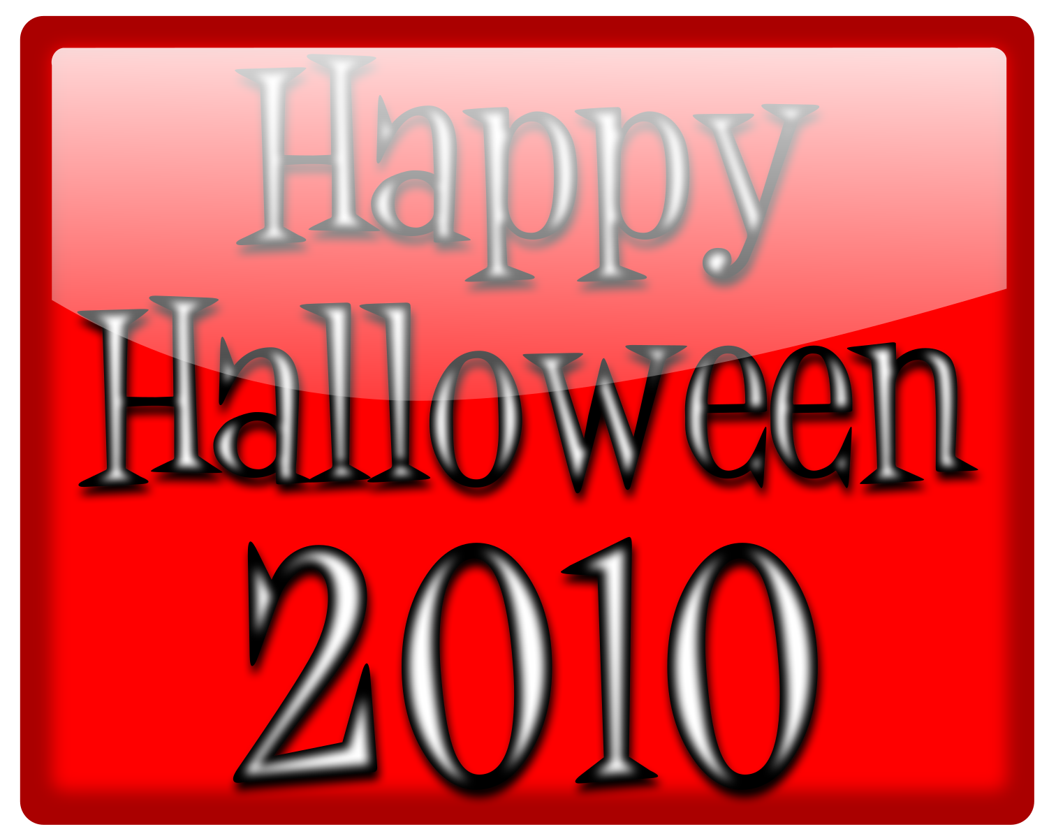 This features a red background with white text that reads "Happy Halloween 2010." The words are arranged in a way that they appear to be floating on the red background. This design is likely used for various purposes, such as greeting cards or decorations during the Halloween season.