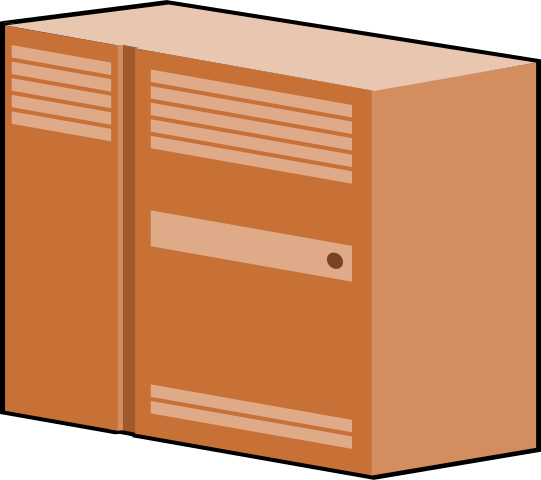 This features a brown wooden locker with multiple compartments. It is an old-fashioned locker, possibly made of wood or cardboard, and has several drawers for storage. The locker appears to be empty at the moment, giving it a clean and organized appearance. The design of this locker suggests that it could have been used in a school setting, providing students with personal storage space for their belongings.
