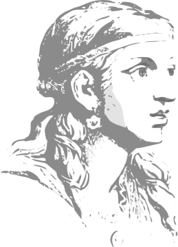 This is a drawing of a woman with long hair, wearing a headband. She has a stern look on her face and appears to be looking directly at the viewer. The drawing is in black and white, giving it an old-fashioned appearance. It seems to be a portrait or a representation of a person from a historical period.