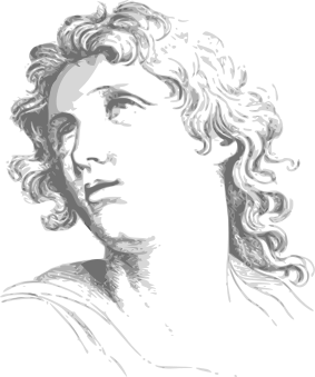 This is a black and white drawing of a man with curly hair, possibly depicting the Greek god Apollo. He has his eyes closed and appears to be looking upwards. The drawing showcases the intricate details of the subject's facial features, such as the nose, mouth, and ears. The overall composition of the image is elegant and captivating, with a sense of depth and dimension that adds to its artistic appeal.
