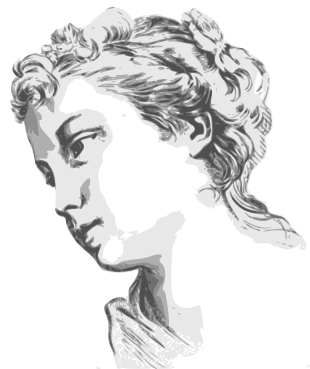 This is a drawing of a woman's face, likely inspired by the original artwork from Charles Lebrun. She has long hair and appears to be looking at something with a focused expression. The drawing is in black and white, giving it an old-fashioned feel. It seems like a portrait or a representation of a female figure, possibly from a historical period.