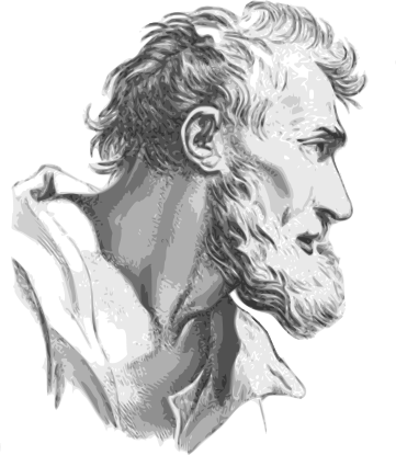 This is a black and white drawing of an old man with a beard. He has gray hair and a robe on, giving him the appearance of a wise or elderly figure. His face is turned to the side, allowing for a clear view of his beard and mustache. The drawing captures the essence of this man's character, showcasing his age and wisdom through his facial features and attire.