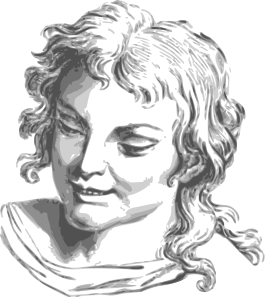 This is a drawing of a woman with long hair, possibly depicting an ancient Greek or Roman figure. She has a smiling expression and appears to be looking directly at the viewer. Her hair is styled in a braid that falls down her back. The drawing showcases the artist's skill in capturing the subject's features and expressions.