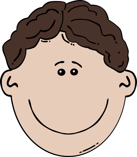 This features a cartoon drawing of a boy's head with a smile on his face. He has light beige skin and wavy brown hair, giving him a friendly appearance. The boy is looking forward, possibly at the viewer or something in front of him. This illustration captures a moment of happiness and positivity, as the young man smiles brightly for the camera.