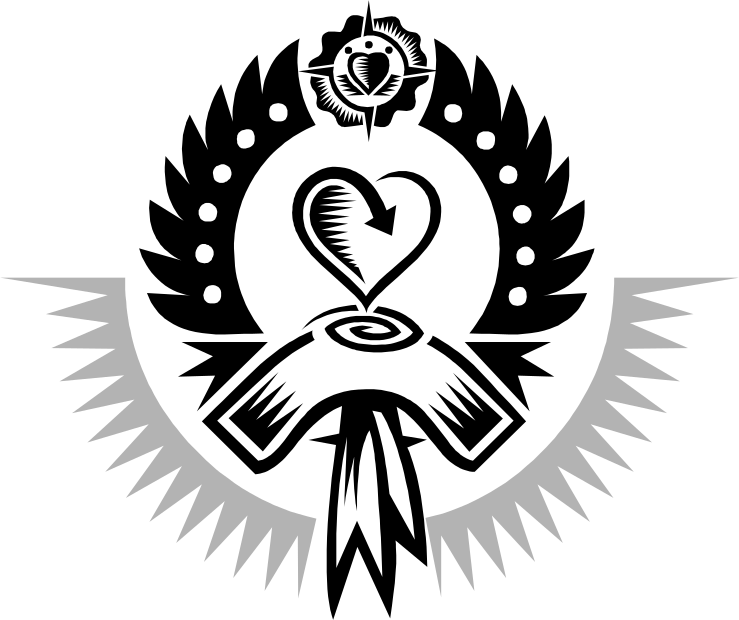 This features a black and white award with a heart in the center. This heart is surrounded by laurel, giving it an elegant appearance. The award appears to be a symbol of achievement or recognition for someone's accomplishments. The design of the award includes a bow, adding a touch of sophistication to its overall look.
