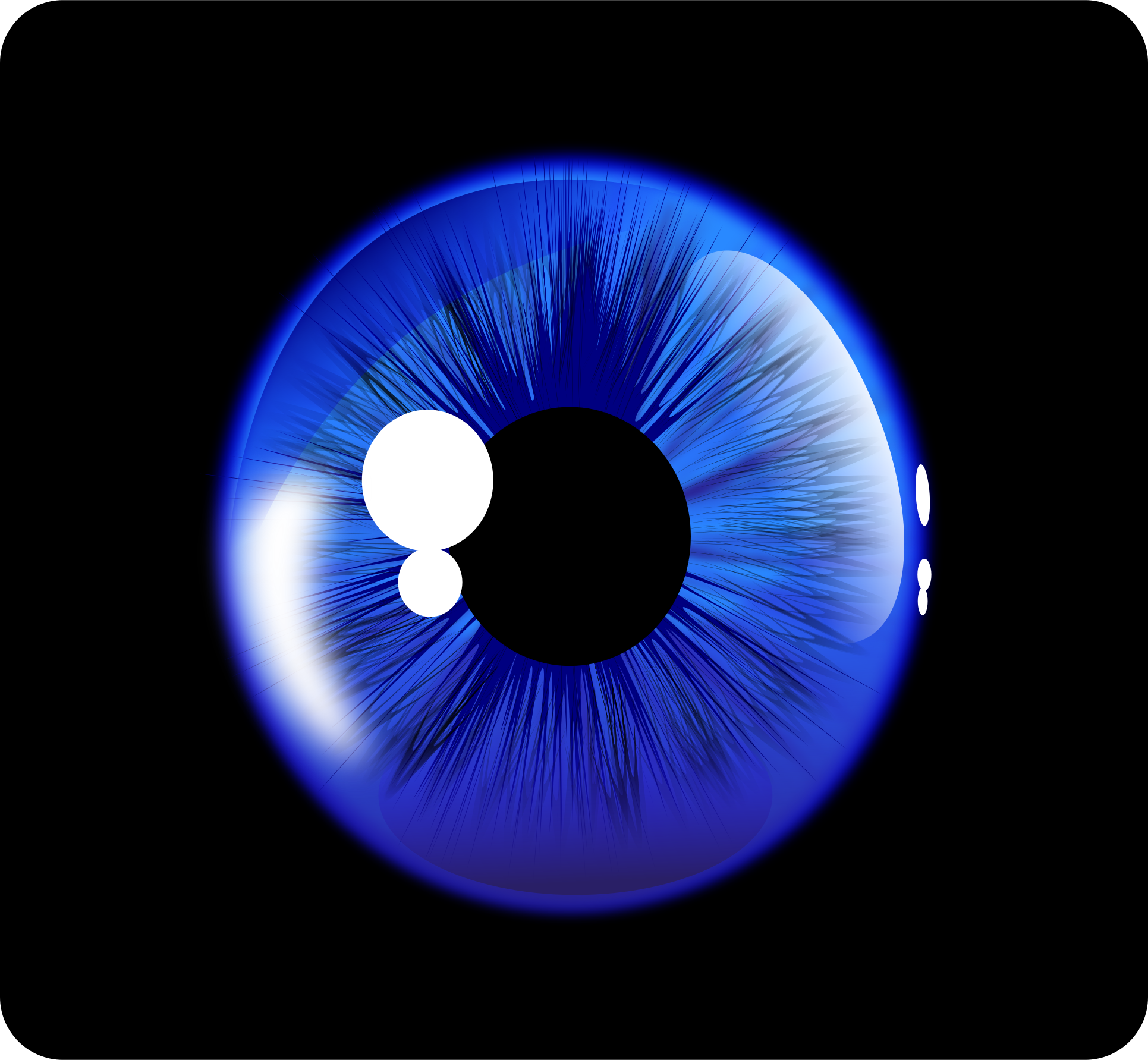 This features a close-up of an eye with a blue iris. The eye is surrounded by black circles, which are likely the pupils. The iris itself has a white dot in the center, adding to its visual appeal. The overall composition creates a striking and detailed representation of the human eye.