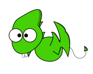 This features a green cartoon character that resembles a pterodactyl. It is lying on its side, with one leg in the air and the other trailing behind it. The character has big eyes and a mouth with teeth, giving it an expressive appearance. The overall design of the creature gives off a playful and fun vibe, making it an appealing image for children or those who enjoy cartoons.