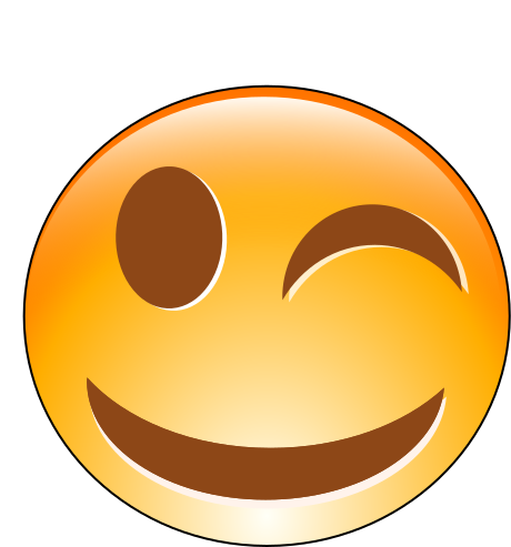 This features a large, colorful smiley face with a wink. The face is made up of various shades of orange and yellow, giving it a warm and inviting appearance. The smiley face has a slightly exaggerated size compared to the rest of the image, making it stand out prominently. This cheerful emblem could be used in a variety of contexts, such as on social media platforms or in digital designs.