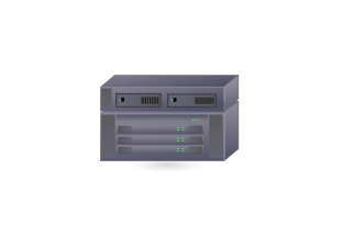 This features a large computer server with multiple hard drives. It is an illustration of the device, which appears to be a storage unit or a data center. The server has several slots for hard drives, and each slot is occupied by a hard drive. In total, there are six hard drives visible in the image, all placed within their designated slots. This illustration provides a clear representation of the computer's internal structure and its components.