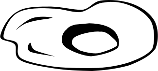 This features a large, round object with an oval shape and a hole in the center. This unique design element is reminiscent of a hollowed-out donut or a bowl. The overall appearance suggests that it could be part of a fast food menu set, possibly representing a pastry or dessert item. The contrasting black and white color scheme adds to the visual interest of the image, making it an eye-catching element in any design.