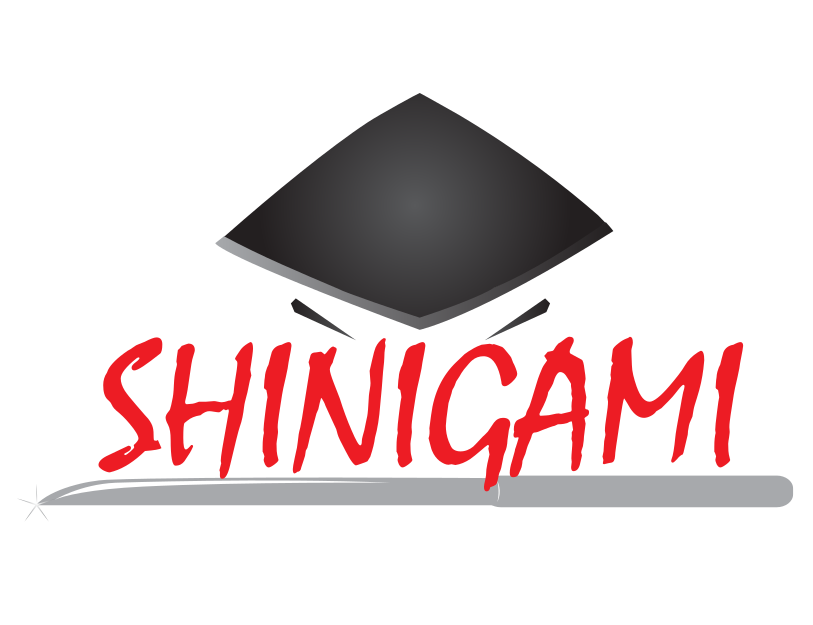 This features a black and white logo for the word "Shinigami." Shinigami is a Japanese term that refers to an entity or spirit that takes away human souls. This logo has been designed with a modern, minimalist style, making it visually appealing and easy to recognize. The word itself is written in red text on a white background, which contrasts nicely against the black and white design of the logo. Overall, this logo effectively conveys its meaning while maintaining an attractive appearance.