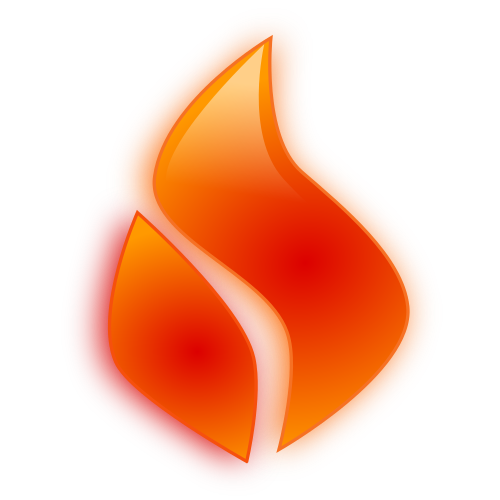This features a bright red flame icon, which is divided into two parts. The flame appears to be glowing and has an orange hue, giving it a warm and inviting appearance. This symbol could represent fire or heat in various contexts, such as a logo for a company that deals with fire safety or a design element for a website related to cooking or heating appliances. The flame's vibrant color and distinctive shape make it an eye-catching and memorable image.