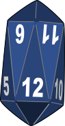 This features a blue, three-dimensional die with the numbers 1 through 10 on it. The die is placed in front of a white background, making it stand out prominently. The numbers are arranged in a circular pattern around the edges of the die, with each number being clearly visible and distinct from one another. This unique design makes the die an interesting and eye-catching piece that could be used for various games or as a decorative item.