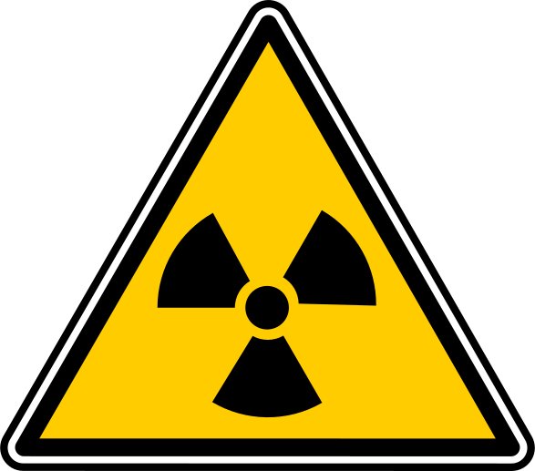 This features a yellow sign with a black outline of a radioactive symbol, commonly known as the "danger" or "radioactive" sign. This warning sign is meant to alert people about potential hazards related to radiation exposure. The sign's bold design and bright colors make it easily noticeable and understandable for those who come across it. It serves as a reminder of the importance of caution when dealing with radioactive materials or environments, ensuring that individuals take necessary precautions to protect themselves from potential harm.
