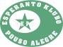 This features a green and white logo for Esporanto Klubo Pouso Alegre. The logo is in the shape of a star, with the word "Esporanto" written above it in white letters. Below the word "Esporanto," there are three stars arranged in a row. The logo appears to be a symbol or emblem for the club, possibly representing its values or mission.