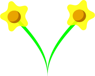 This features two yellow daffodils with green stems, placed on a white background. They are positioned in such a way that they appear to be growing out of the ground, creating an illusion of depth and dimension. The daffodils have a slightly curved shape, adding to their natural appearance. This artistic representation of flowers creates a visually appealing scene that captures the beauty of nature.