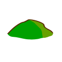 This features a green hill with a black outline at the top. It is situated on a white background, giving it a contrasting appearance. The hill appears to be slightly elevated and has a unique shape that makes it stand out in the scene. This could potentially be an artistic representation of a landscape or simply an interesting visual element within the image.