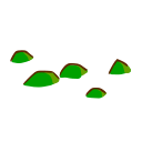 This features a group of five small green hills, each varying in size and shape. They are all placed on top of one another, creating an interesting visual effect. Each hill has a black outline, which adds to the overall design of the scene. The combination of the green color and the contrasting black outlines make this image visually appealing and unique.