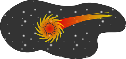 This features a sun with an orange and yellow outline, which appears to be shooting through the night sky. It is leaving a trail behind it as it moves across the scene. In addition to this main focal point, there are numerous stars scattered throughout the background, creating a sense of depth and space in the image. The combination of the sun's vibrant colors and the starry backdrop creates an interesting visual effect that captures the viewer's attention.