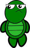 This features a cartoon turtle with a green shell and a yellow face. It appears to be standing on its hind legs, giving the impression of being in motion or ready for action. The turtle's expression is somewhat displeased, as if it is not particularly happy about something. This could be due to various reasons such as hunger, boredom, or simply a momentary mood. Overall, the cartoon turtle appears to be an interesting and engaging character that can capture the attention of viewers.
