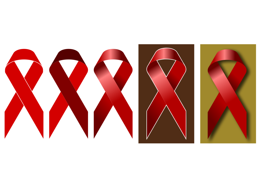 This features four different colored red ribbons, each with a unique design. The first ribbon is a simple red color without any additional elements or patterns. The second ribbon has a gradient design, transitioning from one shade of red to another. The third ribbon is outlined in black, giving it a more defined appearance. Finally, the fourth ribbon has a shadowed effect, creating depth and dimension in its design. These four distinct red ribbons are displayed side by side, showcasing their unique characteristics.
