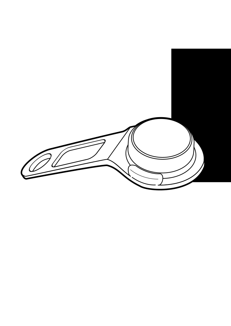 This features a close-up of an object that appears to be a small, white, and round item. It is placed on a surface with a black background, creating a contrast between the two colors. The object seems to have a handle or a grip, making it suitable for holding or using in various ways. Its shape and size suggest that it could be used as a tool or an everyday item, but without more context, it is difficult to determine its exact purpose.