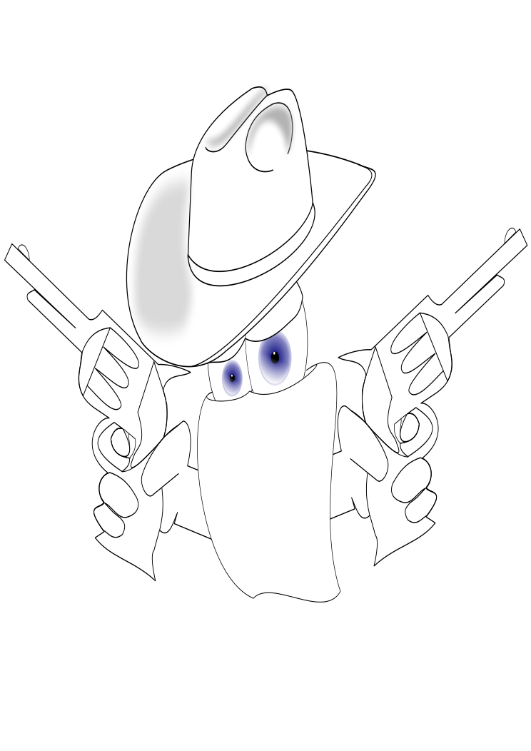 This features a cartoon cowboy character holding two guns in his hands. He is wearing a hat and appears to be looking at the viewer with an intense expression. The drawing has a colorful, western-style theme, giving it a lively and engaging appearance. The cowboy's guns are prominently displayed, adding to the overall visual impact of the image.