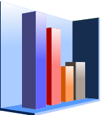 This features a three-dimensional graph with various colors and heights. It is displayed on a blue background, giving it an appealing appearance. There are four distinct bars in the graph, each varying in color and height. These bars appear to be stacked vertically, creating a visually striking representation of data. The combination of the 3D effect and the vibrant colors make this graph an interesting visual display for any viewer.