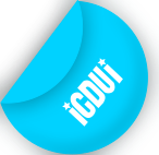 This features a blue circle with the word icdui written in white letters. The circle is slightly curved, giving it an interesting shape. The word icdui appears to be the main focus of the sticker or label, making it easily recognizable and identifiable.